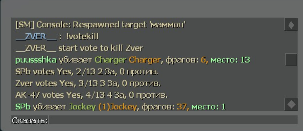 Главный Администратор Woonan Posted September 28, 2022 Главный Администратор Report Share Posted September 28, 2022 режим AmongUs (beta - тестирование и балансировка в процессе): в команде Живых может появится предатель(impostor) и начать противостоять выживанию игрок который стал предателем может ставить ловушки с бомбами(разных типов) куда угодно, включая игроков установленная бомба, в виде коробки с бонусами, активируется когда кто-то ее расстреляет игрок с бомбой может передать её другому, толкнув игрока бомба будет автоматически установлена на игроков, если предатель не пользуется возможностью цель предателя не дать дойти Живым, если команда проиграет + будет установлено не менее 10 ловушек, предатель получит 50 МП Живые могут вычислить предателя и убить, создать голосование на убийство игрока можно командой !votekill, раз в минуту Команда !killimpostor - вы можете угадать кто предатель, но если ошибетесь, то сами погибнете и получите штраф -50 МП предатель выбирается один раз за раунд и только с согласия игрока стать предателем можно 1 раз в день(или до рестарта сервера), если отказались, то уже не сможете стать предателем в этот день бомбу нельзя поставить до начала игры импостор проигрывает, как только один игрок зайдет в убегу(включился режим Внезапная смерть) взрыв бомбы теперь всегда наносит урон(урон от Реальная бомба складывается) 1 Quote Правила сервера Правила форума Link to comment Share on other sites More sharing options...
